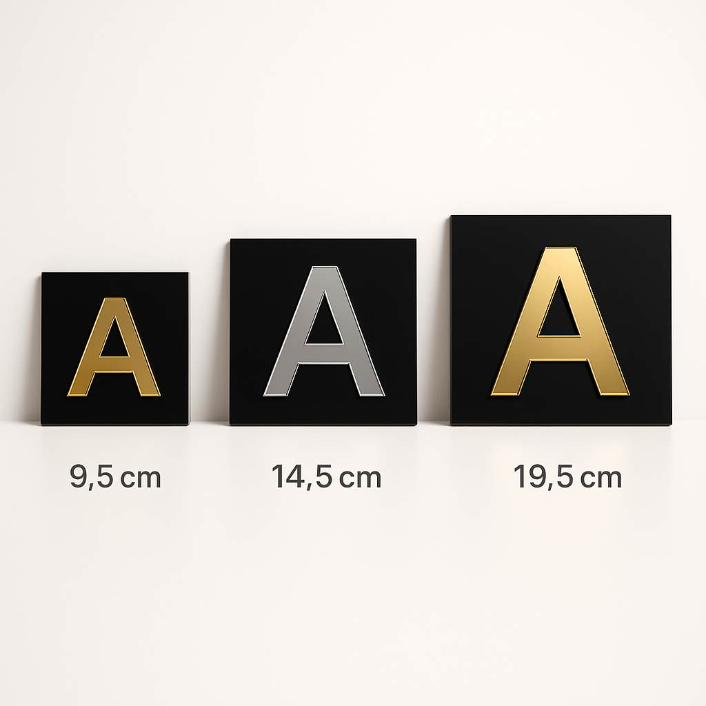 Build your own names & words with premium 3D layered acrylic letter tiles. Pick a tile colour (Black or White), a font colour (White, Black, Mirror Gold, or Mirror Silver), and your size. Clean choices, high contrast, modern look.