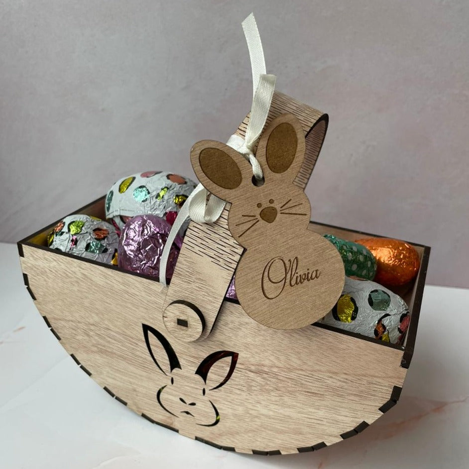 Make Easter even sweeter by filling this cute basket with delicious treats for your loved ones! (Name tag & Easter eggs not included) Height: 9cm Width: 19cm Depth: 10cm