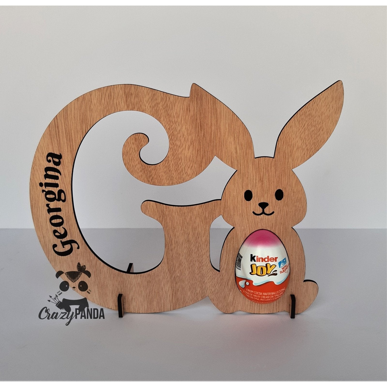 Surprise your little one with this delightful Easter bunny egg holder! Complete with a giant initial and their name engraved, these stands make lovely additions to a child's room to celebrate the Easter occasion.