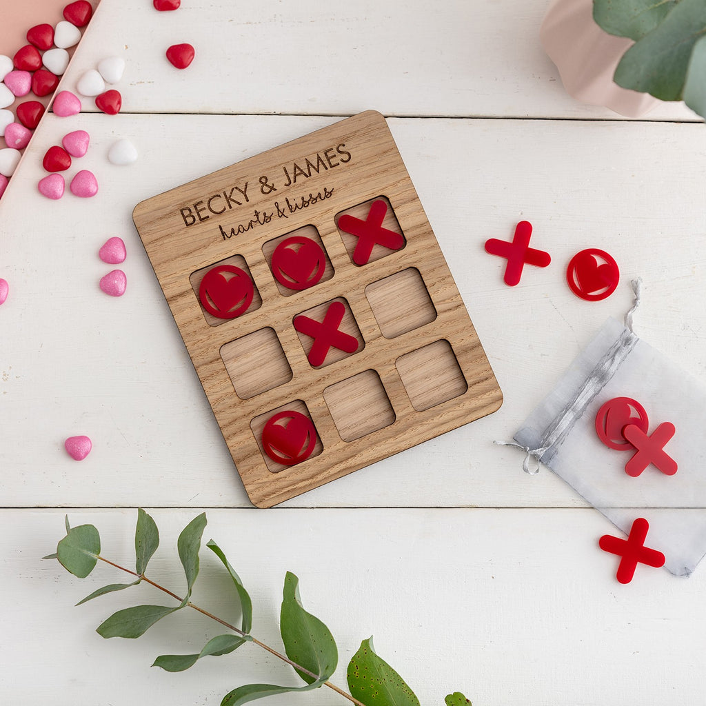 A cute personalised version of noughts and crosses - a favourite boredom busting game but made extra special for the love birds out there. Some of you may know this game as 'Tic, Tac, Toe' or 'Three in a row' but we like to call our couples version 'Hearts & Kisses'.