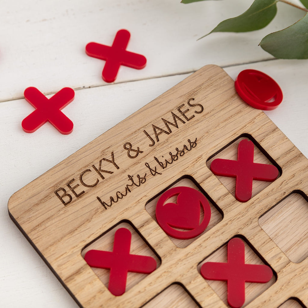Perfect for an anniversary gift, wedding or Valentines day, this playful game is personalised with two engraved names along the top.