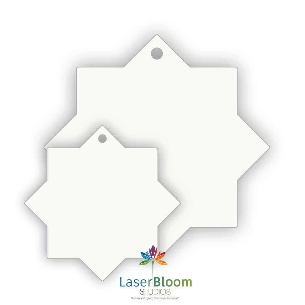 8 Point Star - 40mm-100mm Double-Sided Sublimation Acrylic Blank - 3mm White Gloss | Set of 5