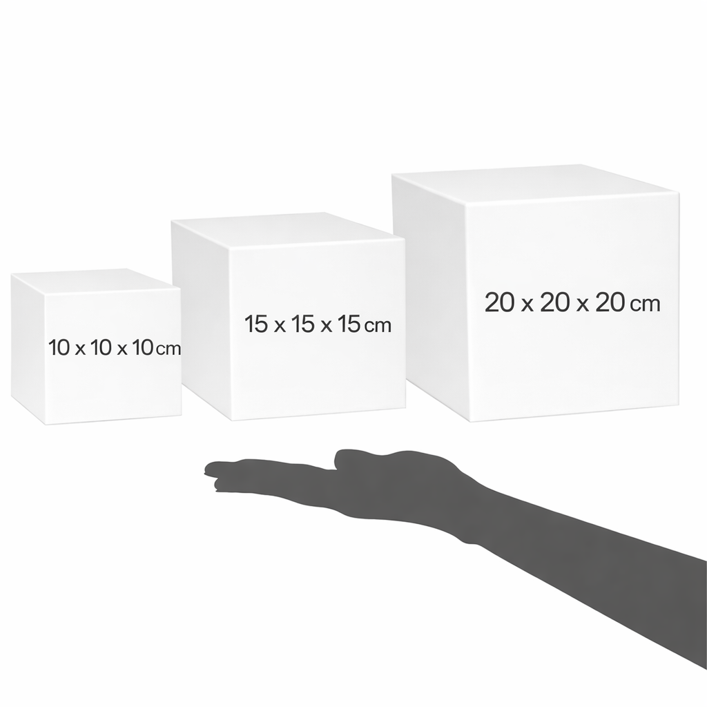 • Medium: 150mm x 150mm x 150mm (Ideal for Skincare bottles, Candles)