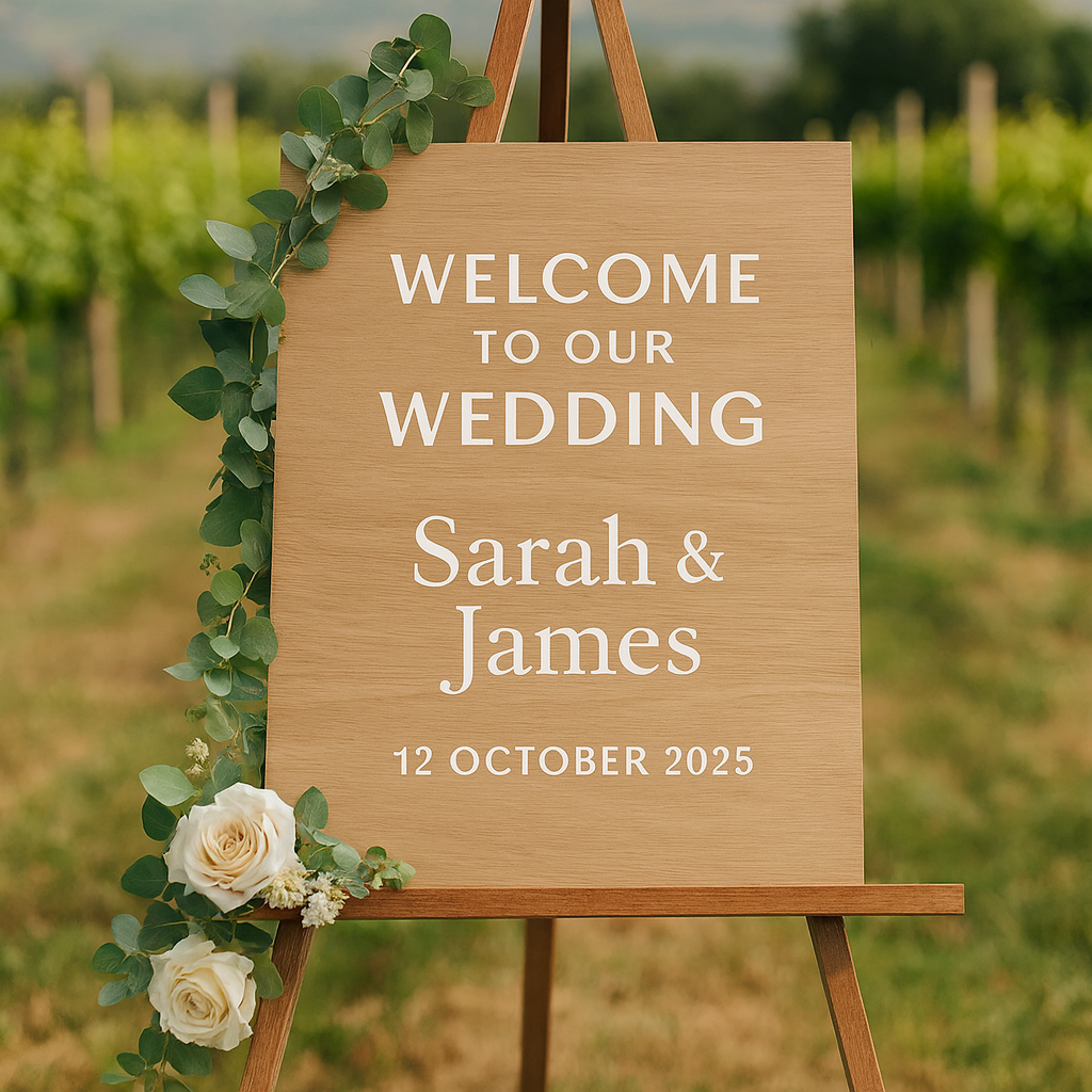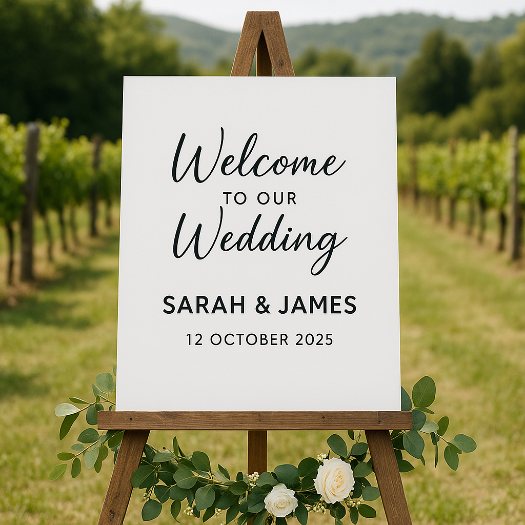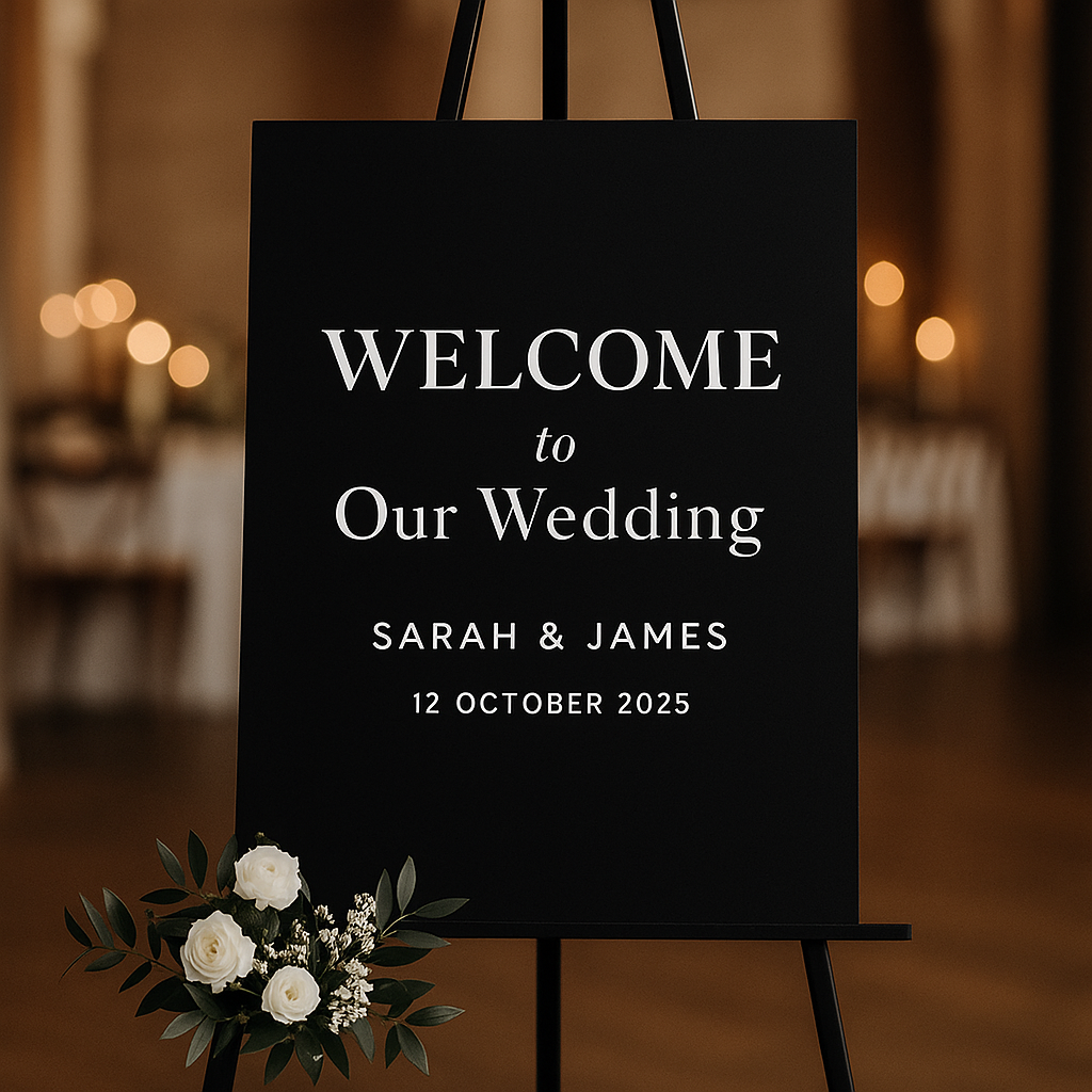 Set the tone for your special day with a luxury welcome sign crafted in premium materials to leave a lasting impression. Choose from sleek acrylic, reflective mirror, or timeless wood - each personalised to match your wedding style.