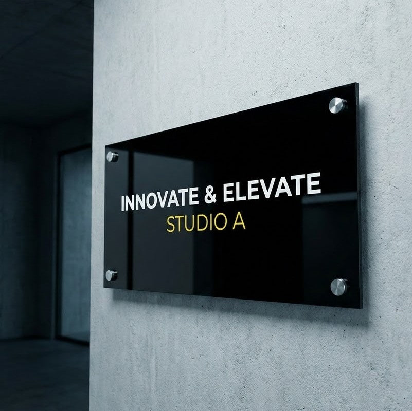 Get the premium look of a glass reception sign with the durability and safety of modern acrylic. The Infinity Brand Sign features your logo UV-printed in high-definition directly onto a crystal-clear or frosted panel, floating 25mm off the wall.