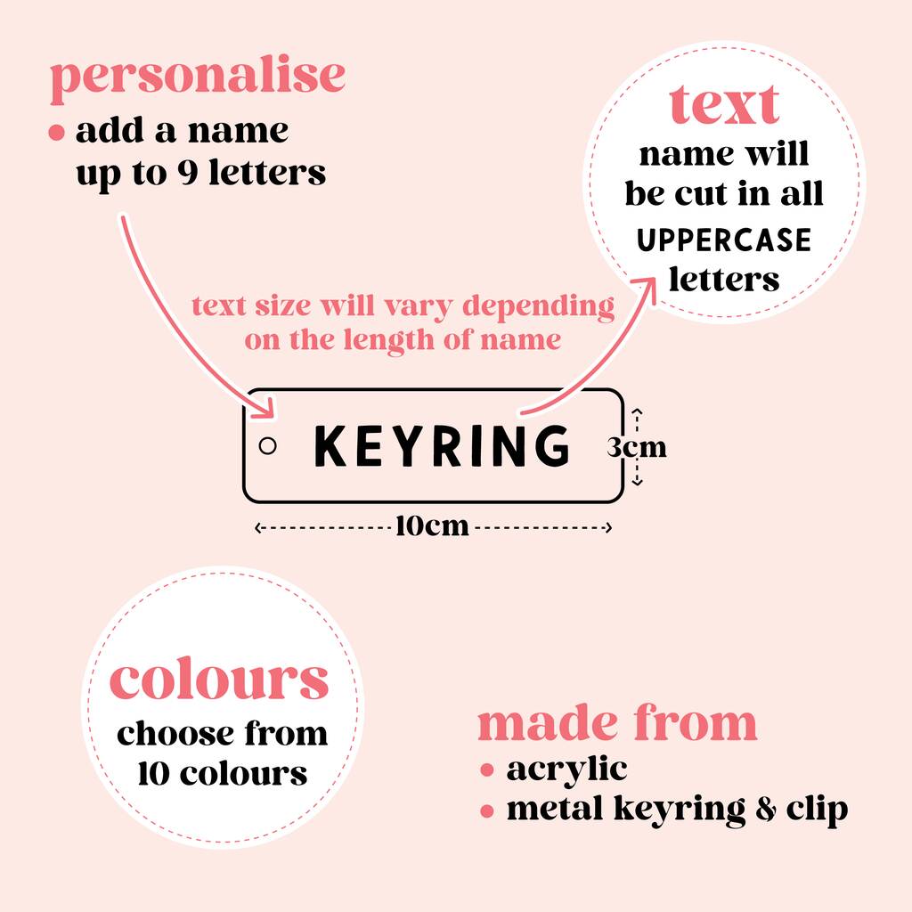 Turn an ordinary bag into something uniquely yours with our custom acrylic name keyring. Available in soft pastel hues and stylish fonts, this is more than a keychain — it's a personal statement.